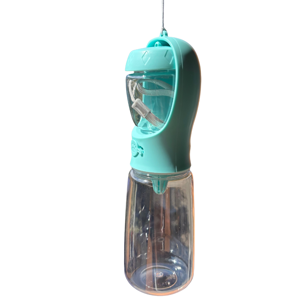 Parfaite pour les balades, voyages ou randonnées, cette gourde portable combine réservoir d’eau et rangement pour croquettes pour garder ton animal bien hydraté et nourri, partout et à tout moment.